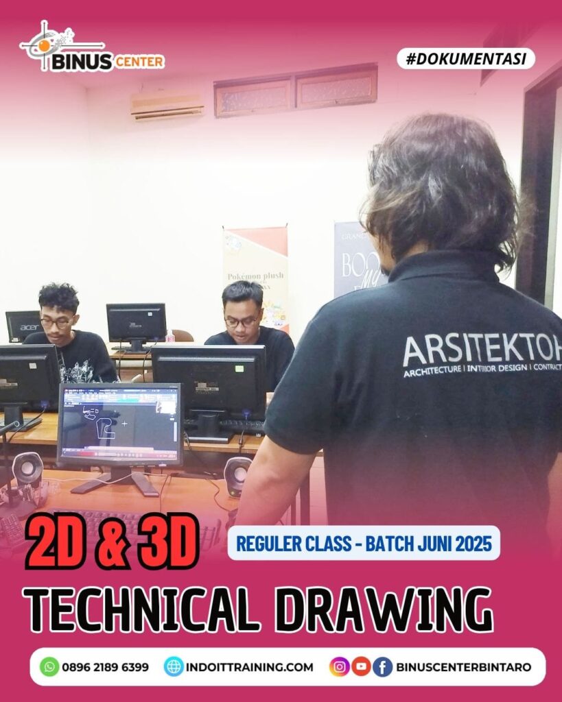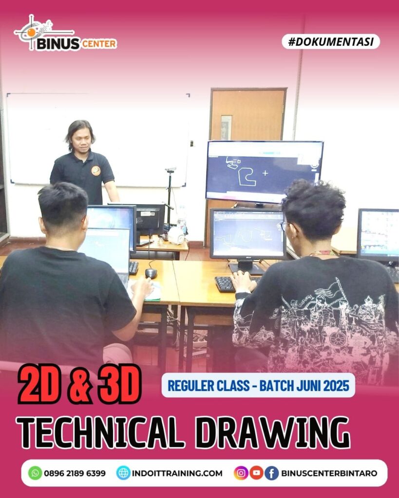 Terima kasih kepada seluruh peserta yang telah mengikuti Kursus Kelas Reguler “2D & 3D Technical Drawing with AutoCAD dan SketchUp” di BINUS Center Bintaro! Dalam industri desain, arsitektur, dan teknik, kemampuan membuat gambar teknik yang akurat dan model 3D yang realistis itu penting banget. Kelas ini dirancang untuk membekali Anda dengan pemahaman menyeluruh menggunakan dua software profesional yang sering dipakai: AutoCAD dan SketchUp.