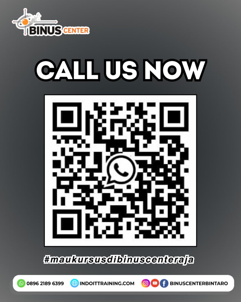 BINUS CENTER BINTARO Jalan Kesehatan Raya Nomor 21 Bintaro – Jakarta Selatan Telepon: 021 736 4049 WhatsApp: 0896 2189 6399 Email: info_bintaro@binuscenter.com